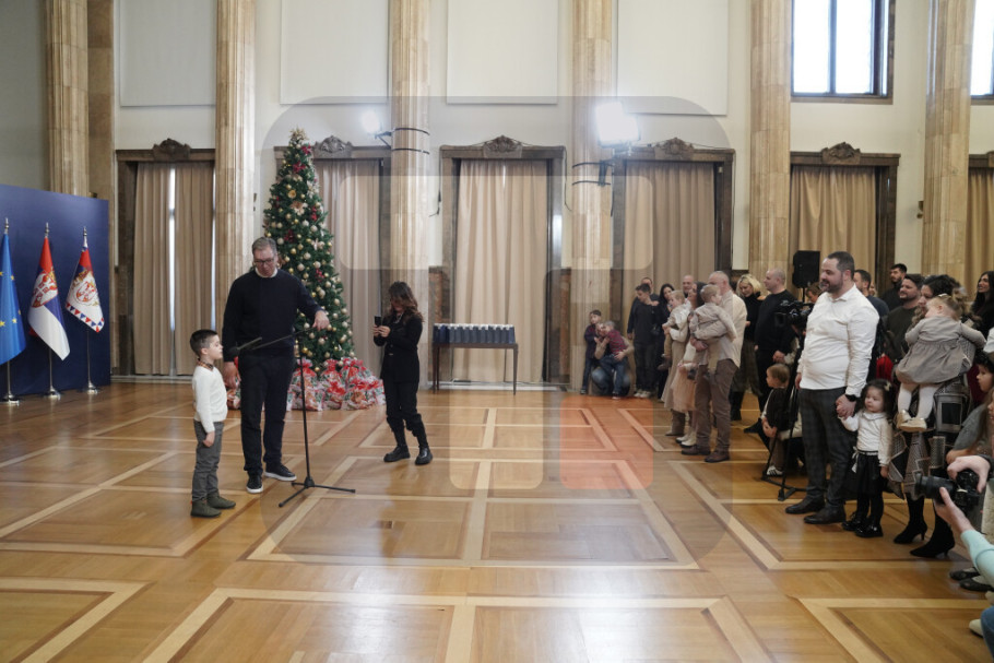 BEOGRAD - Predsednik Srbije Aleksandar Vučić podelio je danas novogodišnje paketiće deci zaposlenih u Generalnom sekretarijatu predsednika Republike i tom prilikom njima i njihovim roditeljima poželeo srećnu i uspešnu Novu godinu.