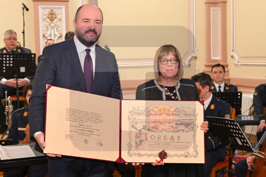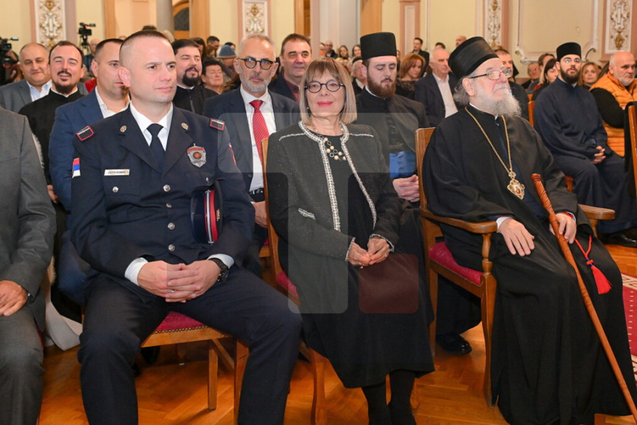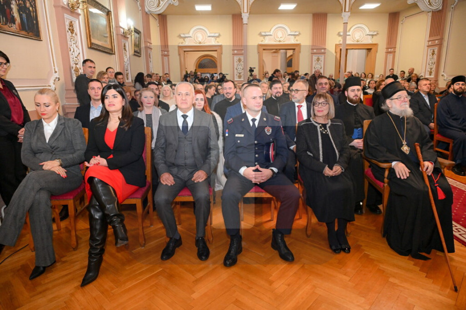 SREMSKI KARLOVCI - Predsednica Pokrajinske vlade Maja Gojković i predsednik Opštine Sremski Karlovci Dražen Đurđić prisustvovali su večeras novogodišnjem koncertu Umetničkog ansambla Ministarstva odbrane "Stanislav Binički" u Karlovačkoj bogosloviji.