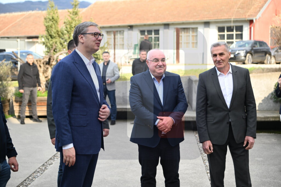 Predsednika Vučića dočekali su ispred destilerije vlasnik Dragan Gavrić i privrednici, a sa njim u obilasku su bili i ministar poljoprivrede Dragan Glamočić, ministarka privrede Adrijana Mesarović kao i predsednik SNS Miloš Vučević.