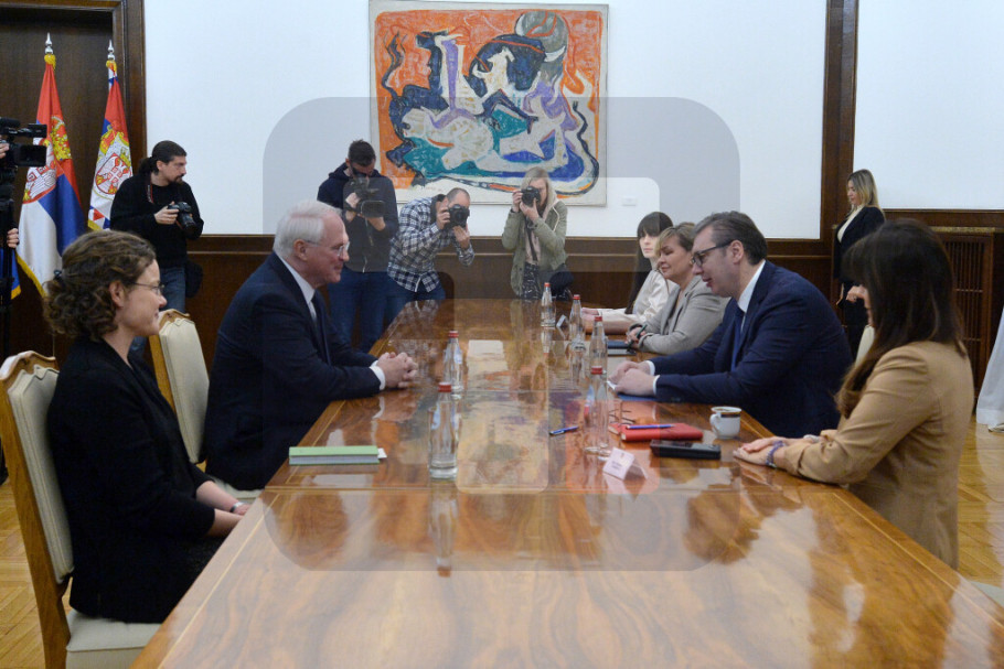 BEOGRAD - Predsednik Srbije Aleksandar Vučić primio je danas ambasadora Sjedinjenih Američkih Država Kristofera Hila, sa kojim je razgovarao o bezbednosnoj situaciji i položaju Srba na Kosovu i Metohiji, dijalogu Beograda i Prištine, regionalnoj saradnji i bilateralnim pitanjima.