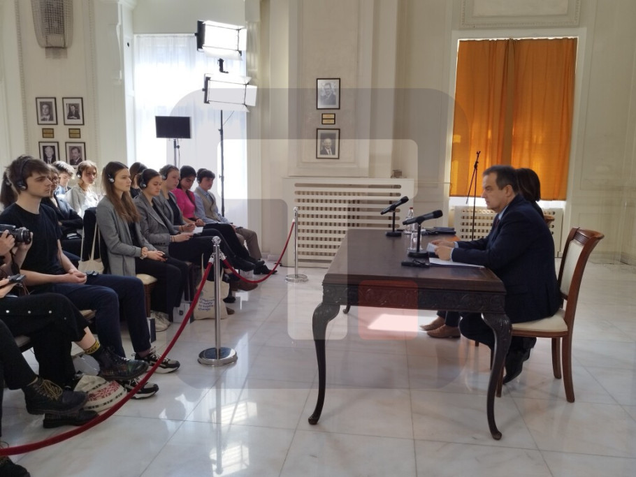 BEOGRAD - Predstavnici francuske studentske organizacije "BBE - Burgonj Balkan Ekspres", Fakulteta političkih nauka Sajens Po u Parizu, posetili su danas Ministarstvo spoljnih poslova, gde su čuli predavanje prvog potpredsednika Vlade i ministra spoljnih poslova Republike Srbije Ivice Dačića, koji je predstavio spoljno-političke prioritete Republike Srbije i odgovarao na pitanja studenata.