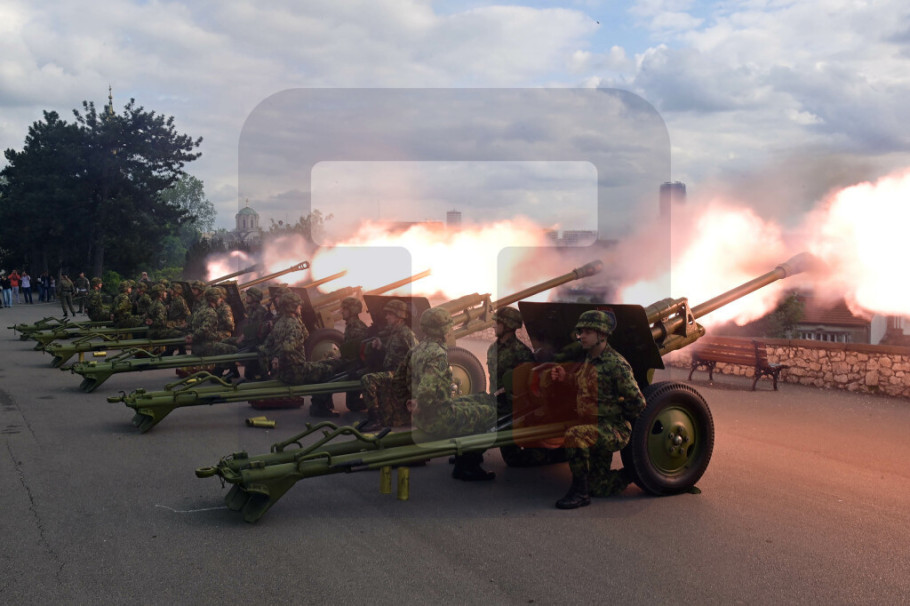BEOGRAD - Pripadnici Garde Vojske Srbije izvršili su danas, po naređenju predsednika Republike i vrhovnog komandanta Vojske Srbije Aleksandra Vučića, počasnu artiljerijsku paljbu sa Savske terase na Kalemegdanu, povodom 9. maja - Dana pobede nad fašizmom.