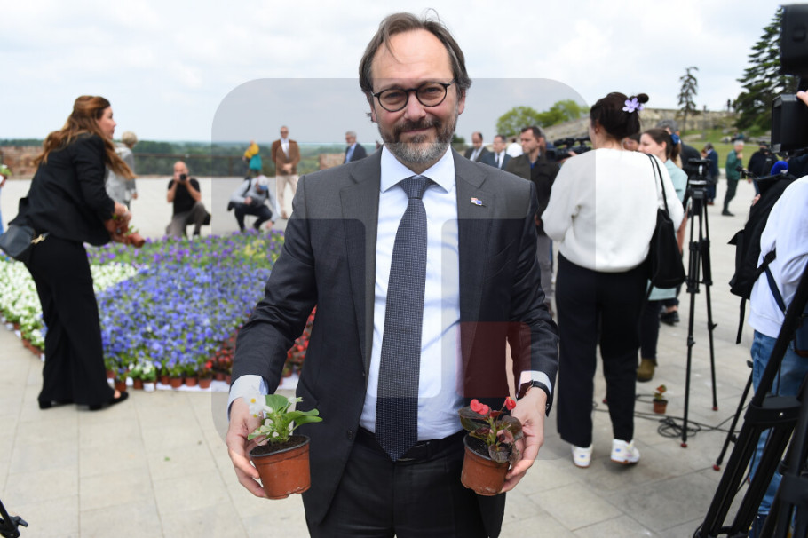 Ambasador Evropske unije Emanuele Žiofre je izjavio da danas nema proslava jer Srbija žali tragični gubitak svoje dece koja su stradala na izuzetno nasilan način i da zato sa ministarkom Miščević i ambasadorima država članica postavlja simbol, tepih od cveća u obliku srca koji je u bojama Srbije i zastave EU.