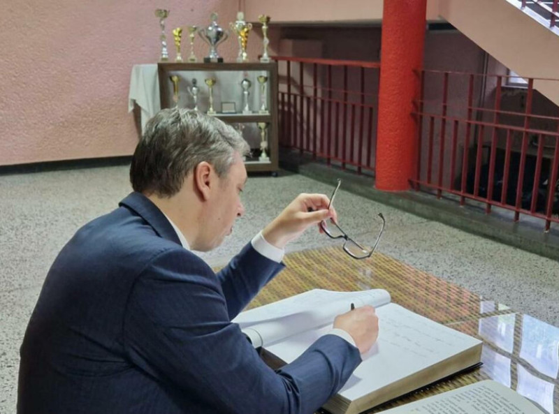 BEOGRAD - Fotografije u koje je Tanjug danas imao uvid dokazuju da je predsednik Srbije Aleksandar Vučić posetio Osnovnu školu "Vladislav Ribnikar" posle masakra koji se u njoj dogodio, čime se negiraju tvrdnje koje se iznose u javnosti da nije posetio školu.