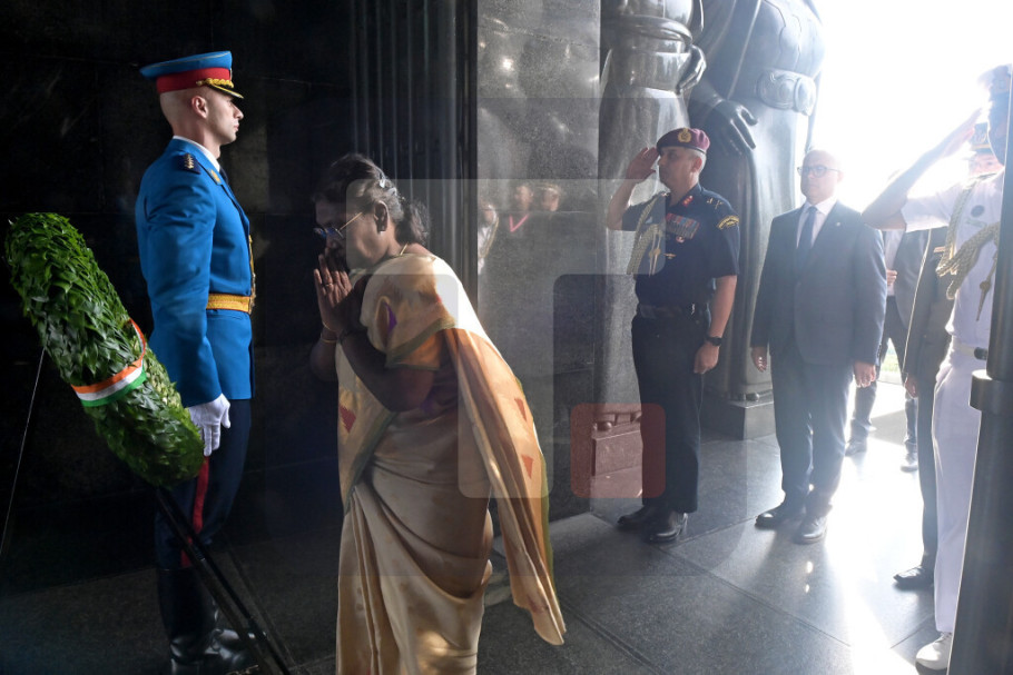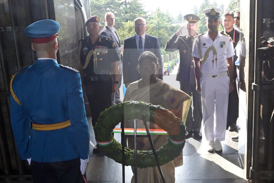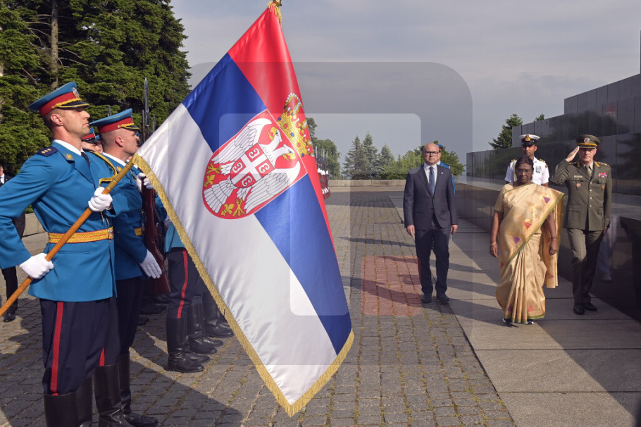 BEOGRAD - Predsednica Republike Indije Droupadi Murmu, u pratnji potpredsednika Vlade i ministra odbrane Miloša Vučevića i načelnika Generalštaba Vojske Srbije generala Milana Mojsilovića, položila je danas venac na Spomenik neznanom junaku na Avali u okviru zvanične posete Republici Srbiji.