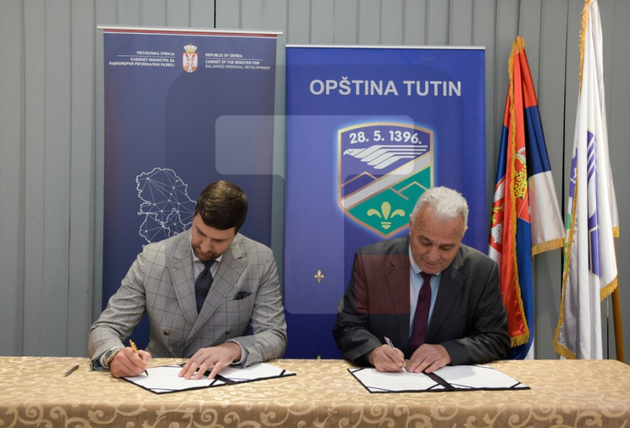 TUTIN - Ministar zadužen za ravnomerni regionalni razvoj Edin Đerlek i predsednik opštine Tutin Salih Hot potpisali su danas ugovor o sufinansiranju projekta koji se odnosi na petu fazu izgradnje zgrade opštinske uprave u Tutinu.