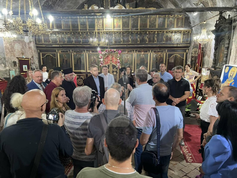 LESKOVAC - Ministar državne uprave i lokalne samouprave Aleksandar Martinović obišao je danas zajedno sa gradonačelnikom Leskovca Goranom Cvetanovićem, crkvu manastira Rudare, posvećenu prepodobnoj mučenici Paraskevi – Svetoj Petki, kao i ruiniranu zgradu starog Konaka, čiji su delovi dodatno uništeni u požaru.