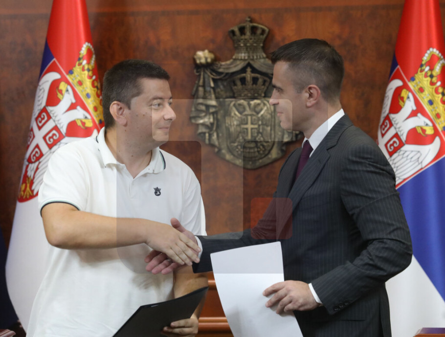 Ministar je danas u Vladi Srbije potpisao ugovore sa 56 udruženja i nevladinih organizacija iz zemlje i inostranstva koje su dobile sredstva u okviru Programa finansijske podrške u oblasti očuvanja i jačanja veza između Republike Srbije i dijaspore.