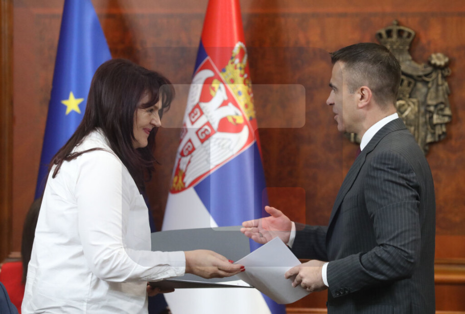 U ime organizacija koje su dobile sredstva, Vladi Srbije i ministru su se zahvalili Savo Štrbac iz Dokumentaciono-informacionog centra Veritas i Slađana Vujičić iz Ženske poslovne mreže.