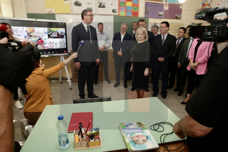 "Kinezi su nam, kada su videli da sam ja reklamirao ove table, poklonili 150 tabli koje vrede više od dva miliona evra. One su danas postavljene u sedam škola, a doneli smo odluku da budu u 150 škola u Srbiji i to će biti urađeno u narednih mesec dana", rekao je Vučić.