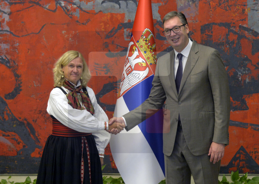 Predsednik Srbije dodao je da je iskoristio priliku da zamoli ambasadorku Melosom da prenese pozdrave i izraze posebnog uvažavanja kralju Haraldu Petom, uz želju da mu uzvrati gostoprimstvo u Srbiji.