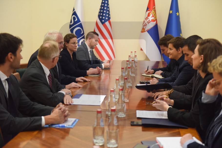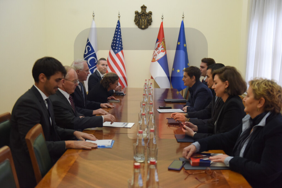 BEOGRAD - Predsednica Vlade Srbije Ana Brnabić razgovarala je danas sa Šefom misije OEBS Janom Bratuom i ambasadorom Sjedinjenih Američkih Država u Beogradu Kristoferom Hilom o merama koje Vlada Republike Srbije sprovodi radi unapređenja položaja nacionalnih manjina u Srbiji.