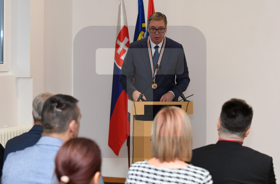 NOVI SAD - Predsednik Srbije Aleksandar Vučić, koji je danas u Novom Sadu primio Orden prvog stepena Slovačke evangeličke crkve a.v. za izuzetne dosadašnje zasluge i podršku slovačkoj crkvi i narodu, rekao je da je ta nagrada svedočnstvo o bratskoj ljubavi između srpskog i slovačkog naroda koji vekovima žive zajedno u našoj Srbiji.