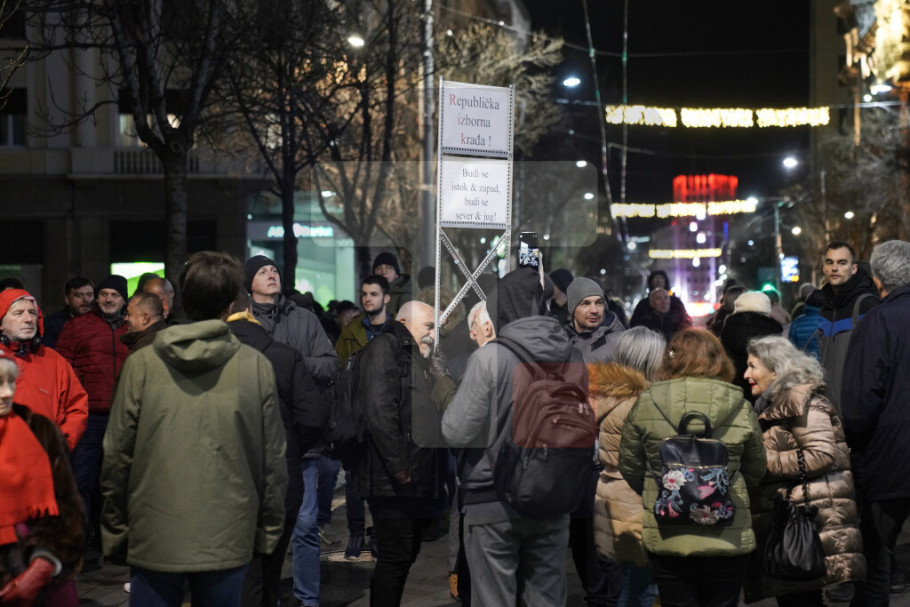 BEOGRAD - Koalicija "Srbija protiv nasilja" (SPN) organizovala je večeras još jedan protest ispred zgrade Republičke izborne komisije (RIK), kome je prisustvovalo nekoliko desetina pristalica, a saobraćaj u Ulici kralja Milana bio je za to vreme zaustavljen.