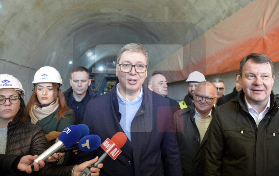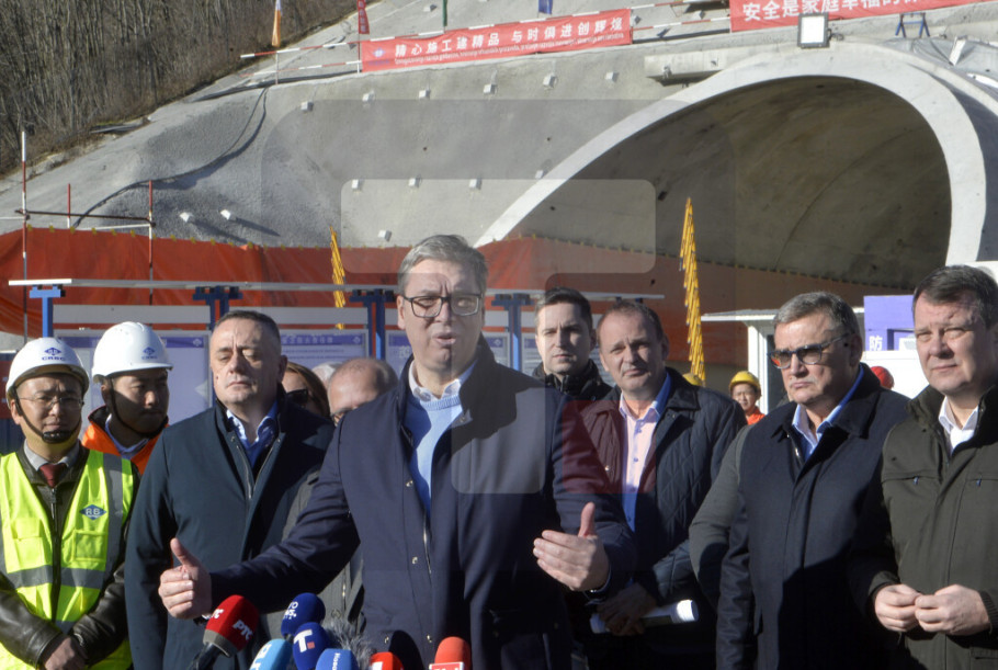 Vučić je tokom obilaska pitao kada će tunel Munjino brdo biti završen, objašnjavajući da će to biti najduži dvocevni tunel u Srbiji dužine 3,5 kilometra.