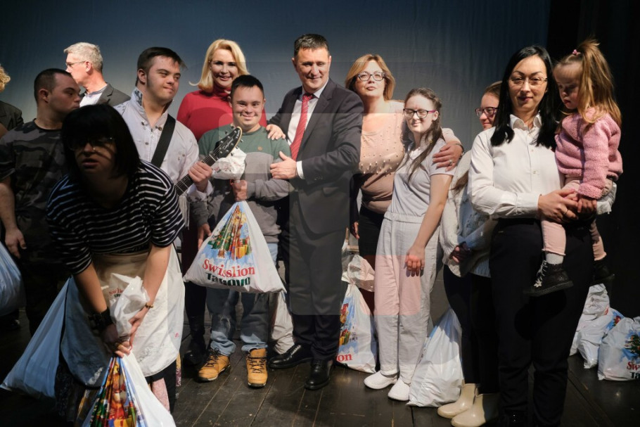 BEOGRAD - Ministarka za brigu o porodici i demografiju Darija Kisić i ministarka za porodicu, omladinu i sport Republike Srpske Selma Čabrić podelile su deci sa Daunovim sindromom novogodišnje paketiće u Narodnom pozorištu u Banjaluci.