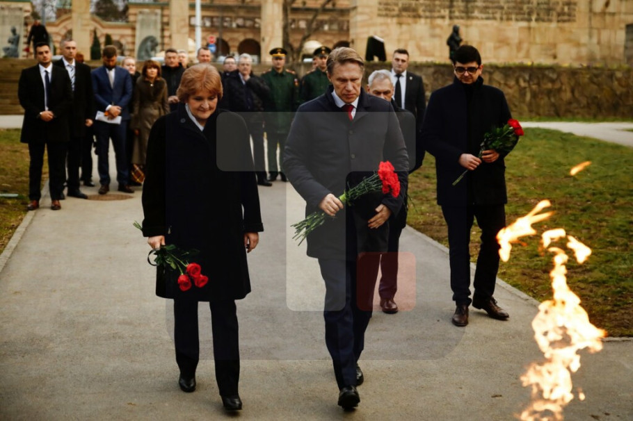BEOGRAD - Delegacija Ministarstva zdravlja Ruske Federacije predvođena ministrom Mihailom Muraškom, koja je danas stigla u dvodnevnu posetu Beogradu, posetila je Spomen-park i položila cveće na Spomenik oslobodiocima Beograda.