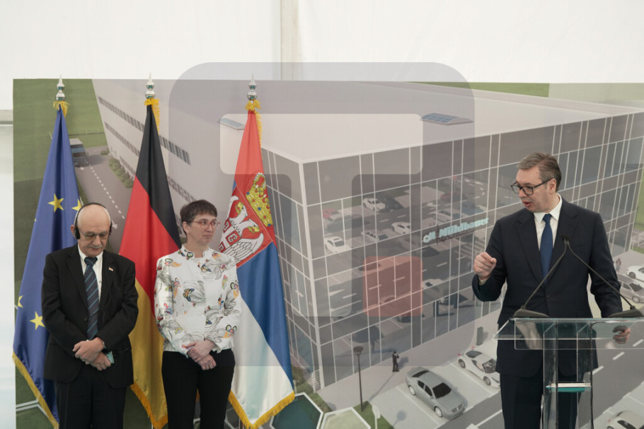 STARA PAZOVA - Predsednik Aleksandar Vučić izjavio je danas, na ceremoniji polaganja kamena temeljca za izgradnju nove fabrike kompanije Milbauer (Muehlbauer Group) u Staroj Pazovi koja će se baviti razvijanjem i sklapanjem baterija i gorivnih ćelija za električna vozila, da je to veoma značajna investicija nemačkog tehnološkog giganta koji će razvijati u Srbiji novu tehnologiju koju nema niko u svetu.