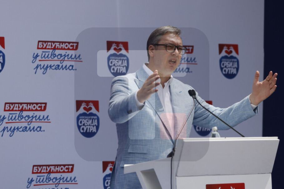 "Da ih pobedimo. Da ih pobedimo ubedljivije nego ikada. I da im pokažemo da Srbija zna da bira svoju sutrašnjicu, da bira svoju budućnost", rekao je Vučić.