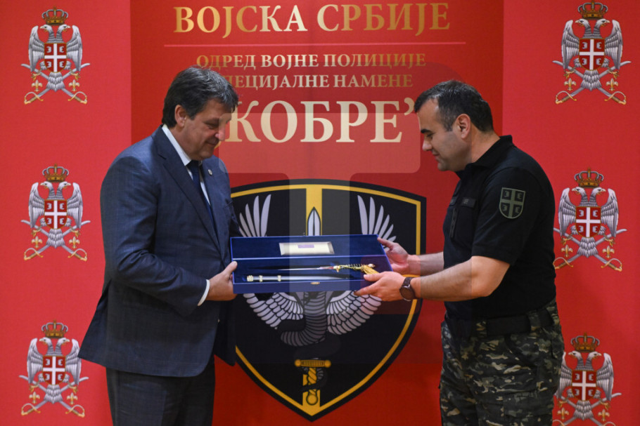 Komandant "Kobri", pukovnik Darko Đošić poklonio je Gašiću paradni bodež, u znak sećanja na današnju posetu.