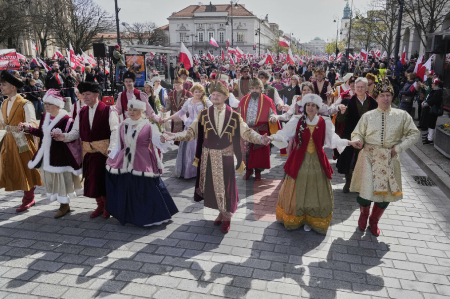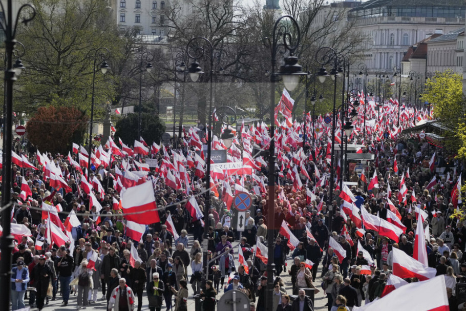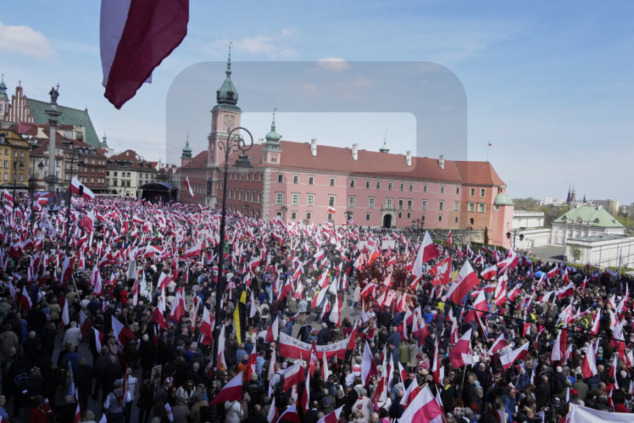 Na skupu se pevala nacionalnu himna i skandiralo se u znak podrške konzervativnom kandidatu Karolu Navrockom koji je kandidat desničarske partije Pravo i pravda (PiS) na predsedničkim izborima koji će biti održani 18. maja, preneo je AP.