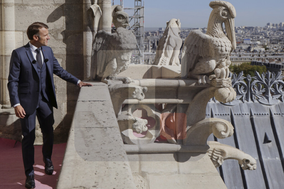 Makron je na ceremoniji otvaranja tada ugostio svetske lidere i poznate ličnosti, među kojima su bili ukrajinski predsednik Volodimir Zelenski, britanski princ Vilijam i tada predsednik-izabrani Donald Tramp.