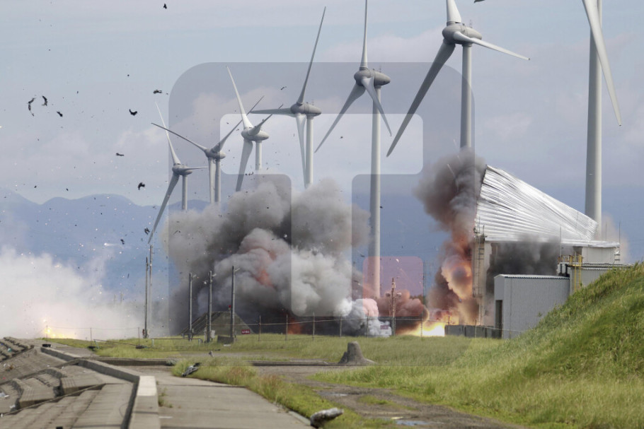 Televizijski snimci pokazuju kako plamen izbija u objektu za testiranje i kako požar guta malu zgradu.