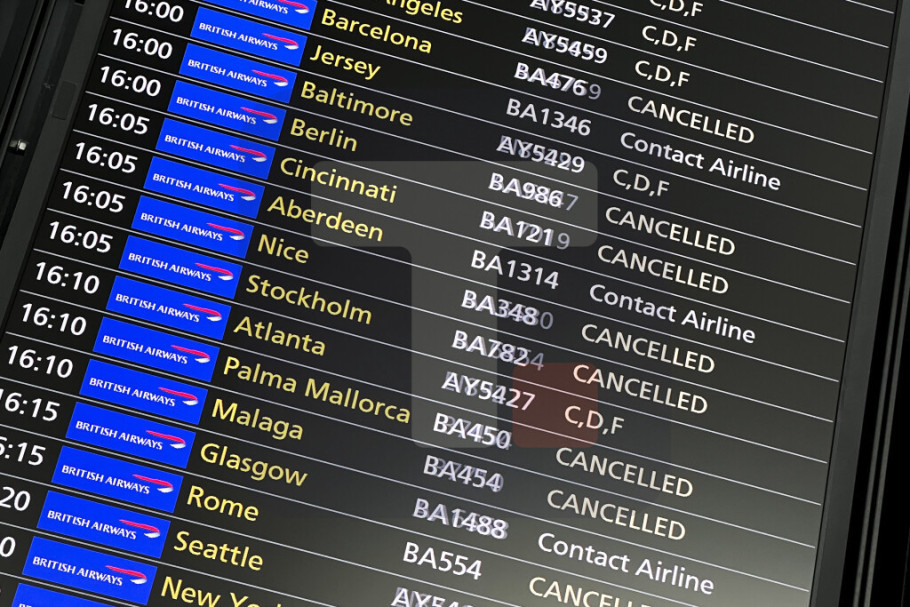 Nekoliko britanskih aerodroma i avio-kompanija, uključujući Britiš ervejz, Virdžin Atlantik i TUI, bilo je pogođeno kašnjenjima i otkazivanjima tokom ponedeljka.