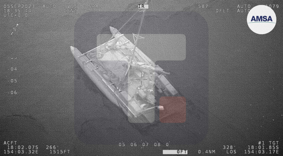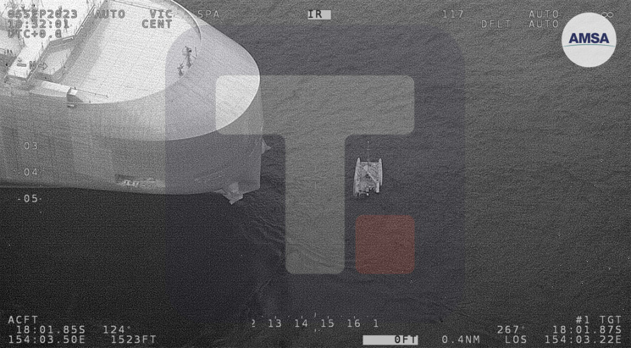 AMSA je navela da su spasilačke ekipe reagovale na poziv za pomoć, koji je upućen rano jutros sa katamarana na naduvavanje dugačkog devet metara, kada se plovilo nalazilo na oko 835 kilometara jugoistočno od Kernsa u Koralnom moru.