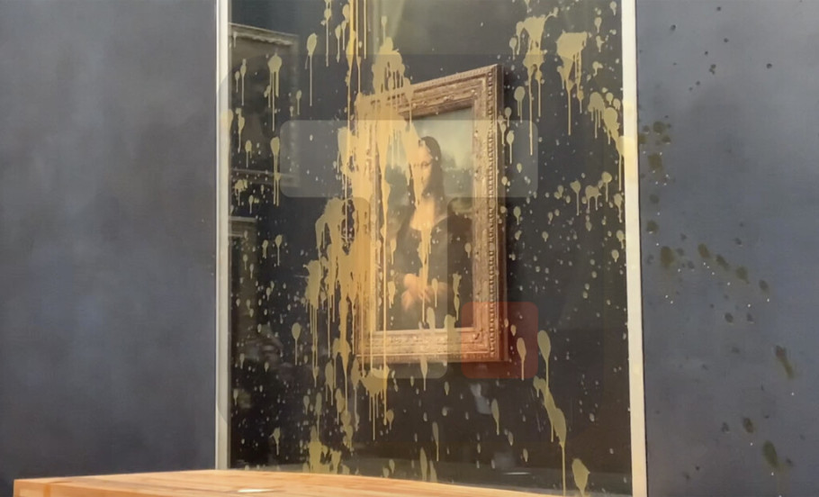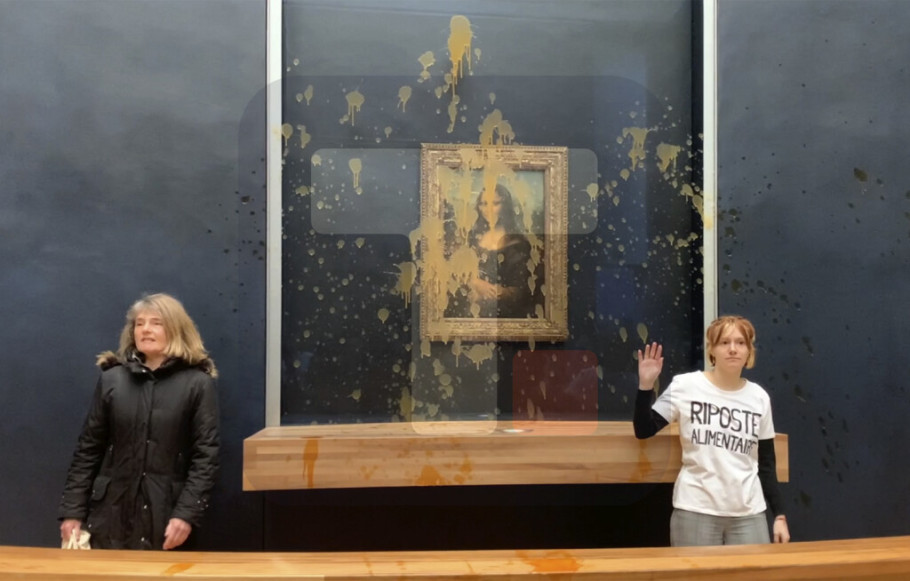 PARIZ - Dvojica ekoloških aktivista isprskala su jutros supom sliku "Mona Lize" zaštićenu blindiranim staklom, koja je izložena u muzeju Luvr, u Parizu.