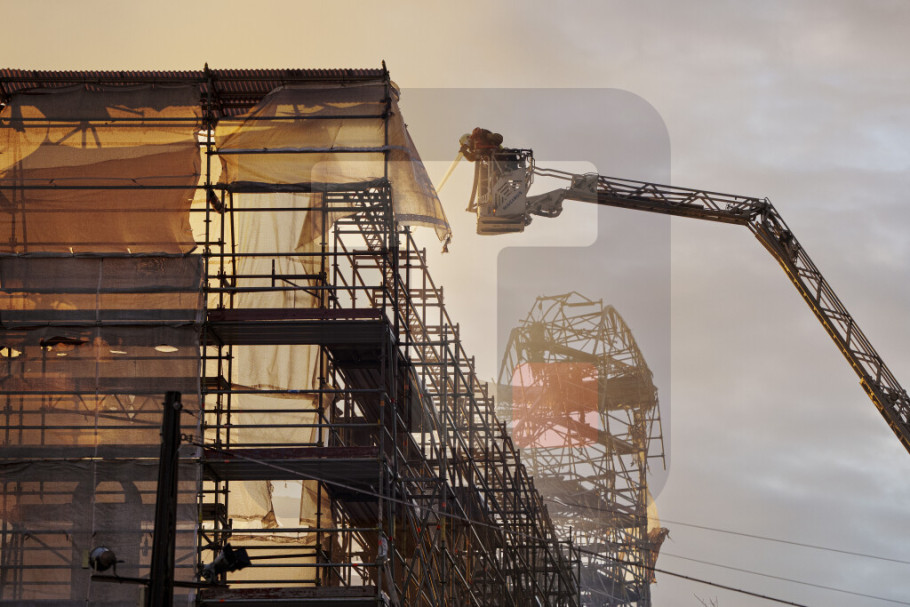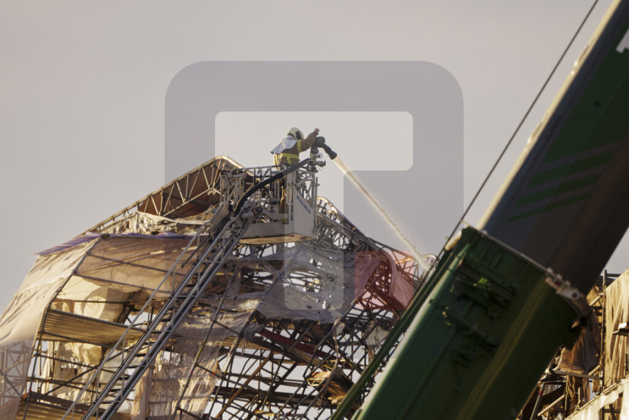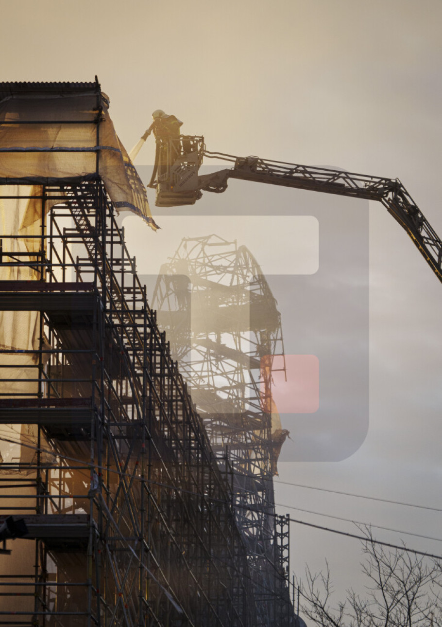 Sat vremena nakon prvih dojava o požaru, vatra je zahvatila toranj i on srušio se na zgradu, koja je bila okružena skelama, i na ulicu iza.