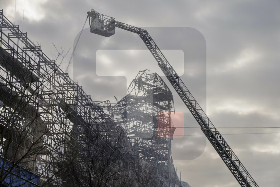 KOPENHAGEN - Danske vatrogasne službe gase poslednje zapaljene delove bivše zgrade berze u Kopenhagenu, stare 400 godina, nakon što je u utorak u njoj izbio požar i zahvatio toranj koji se srušio na krov.
