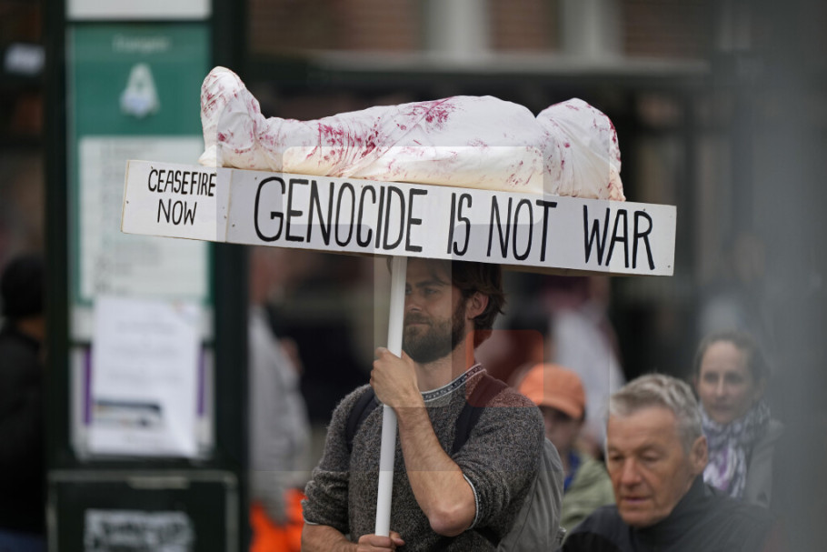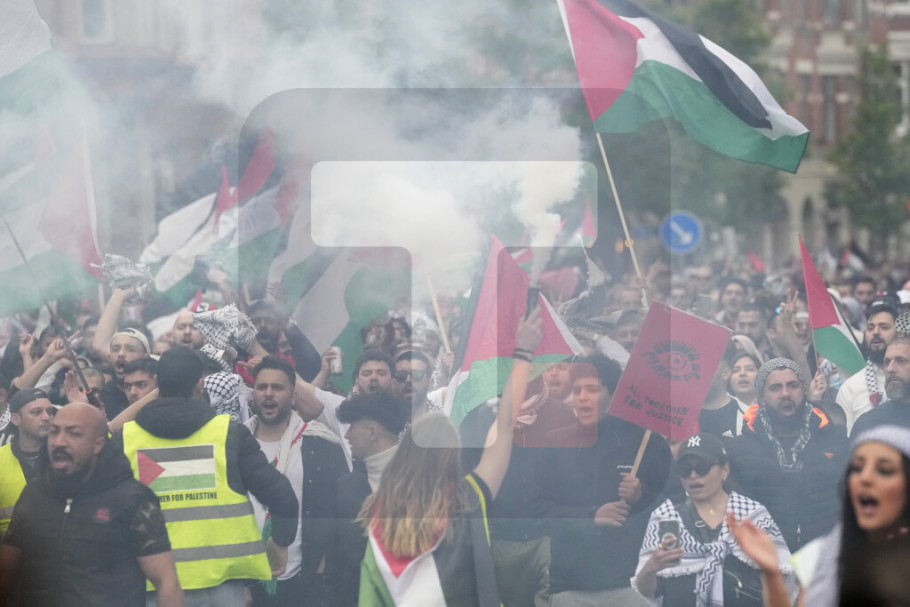 Okupljeni uzvikuju propalestinski moto ''Od reke do mora, Palestina će biti slobodna'' i ''Izrael je teroristička država'', prenosi AP.