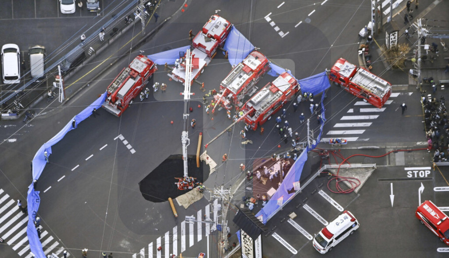 TOKIO - Vrtača koja je progutala kamion na raskrsnici blizu Tokija nastavila je da se širi i spojila se sa drugom rupom koja se formirala u neposrednoj blizini, a spasilačke ekipe i dalje rade na spasavanju vozača, koji je zarobljen već treći dan.