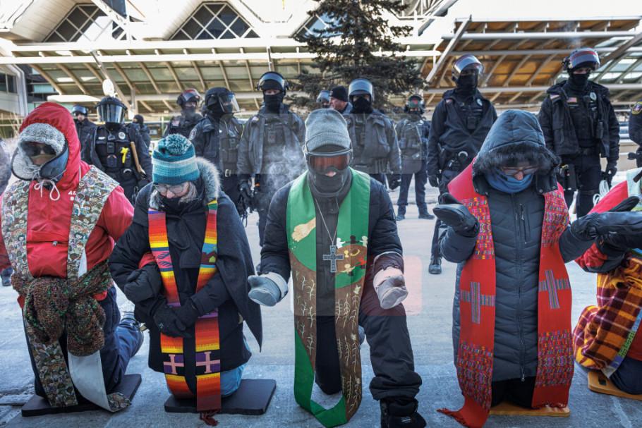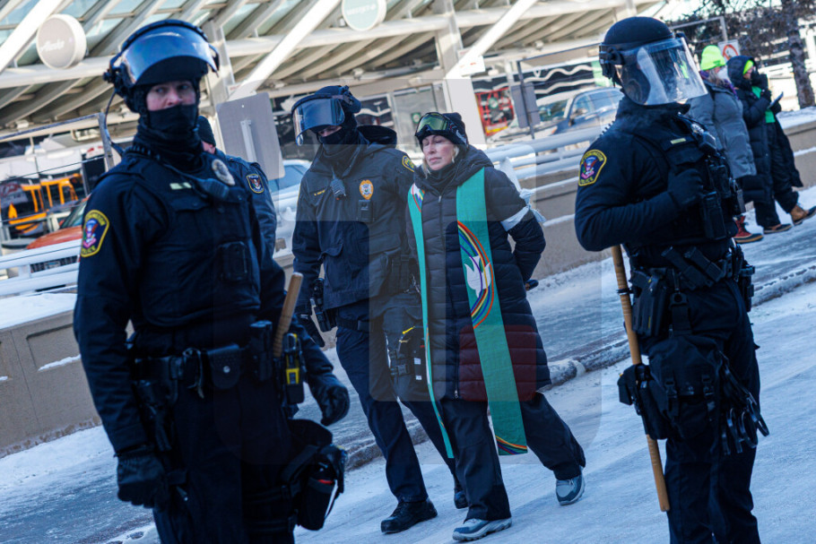 "Oko 100 sveštenika" je uhapšeno, rekao je predstavnik organizacije "Vera u Minesoti" Trevor Koklin, koja je jedan od organizatora protesta na Međunarodnom aerodromu Mineapolis-Sent Pol.