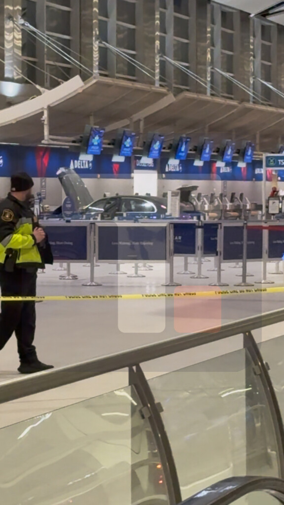Automobil je udario u šalter za karte unutar terminala, saopštile su vlasti aerodroma, a šest osoba je zbog povreda zbrinuto na licu mesta.