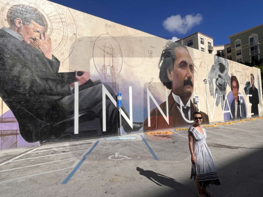 MAJAMI - Murali sa likom Nikole Tesle nalaze se širom SAD, a na jednom - INNOVATE u Holivudu, na Floridi, rame uz rame sa slavnim naučnikom su Albert Ajnštajn, Ilon Mask i Ketrin Džonson - američka matematičarka čiji su proračuni bili ključni za uspeh koje je NASA ostvarila u svemirskom programu.