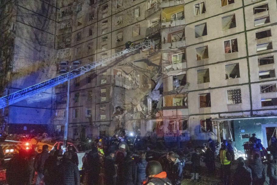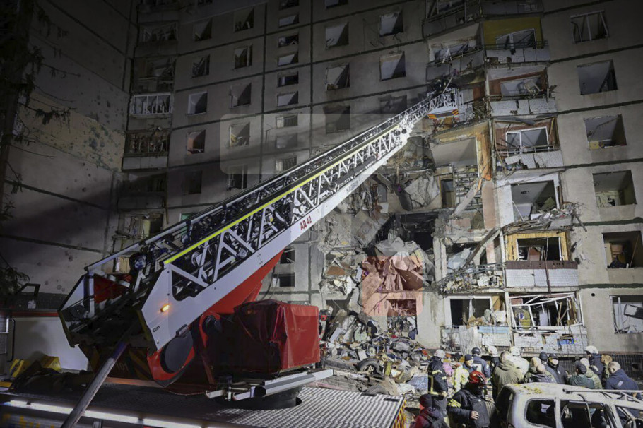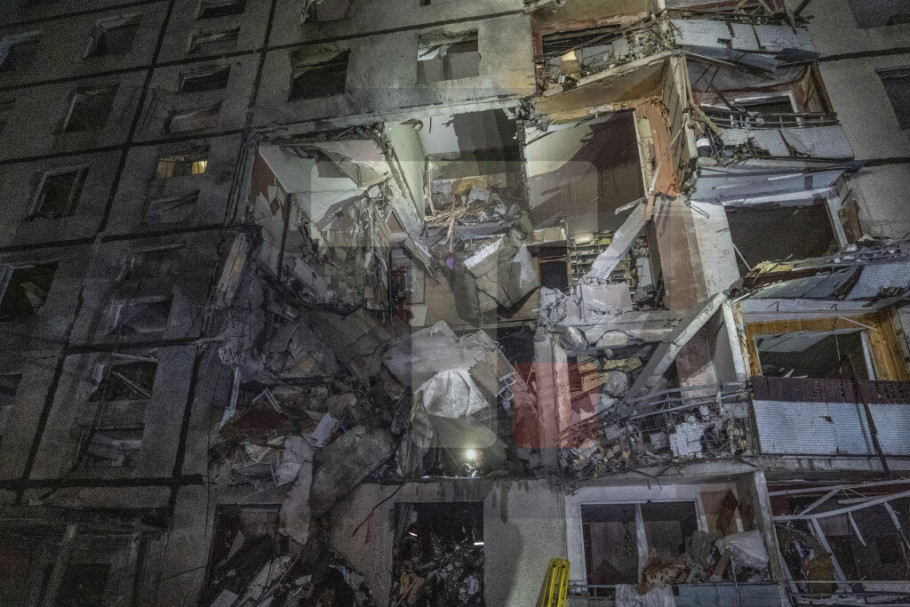 Kako prenosi Ukrinform, zbog ruskog napada kasno u sredu, ulaz u ovu devetospratnicu je potpuno uništen.