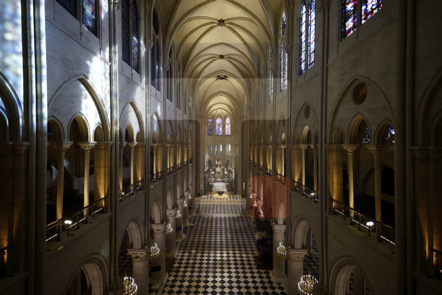 Snimci koji su emitovani uživo tokom Makronove posete Notr-Damu pokazali su unutrašnjost kultne katedrale onako kako su vernici mogli da je dožive u srednjem veku - njene široke, otvorene prostore ispunjene jarkim svetlom koje osvetljava žive boje vitraža, preneo je AP.