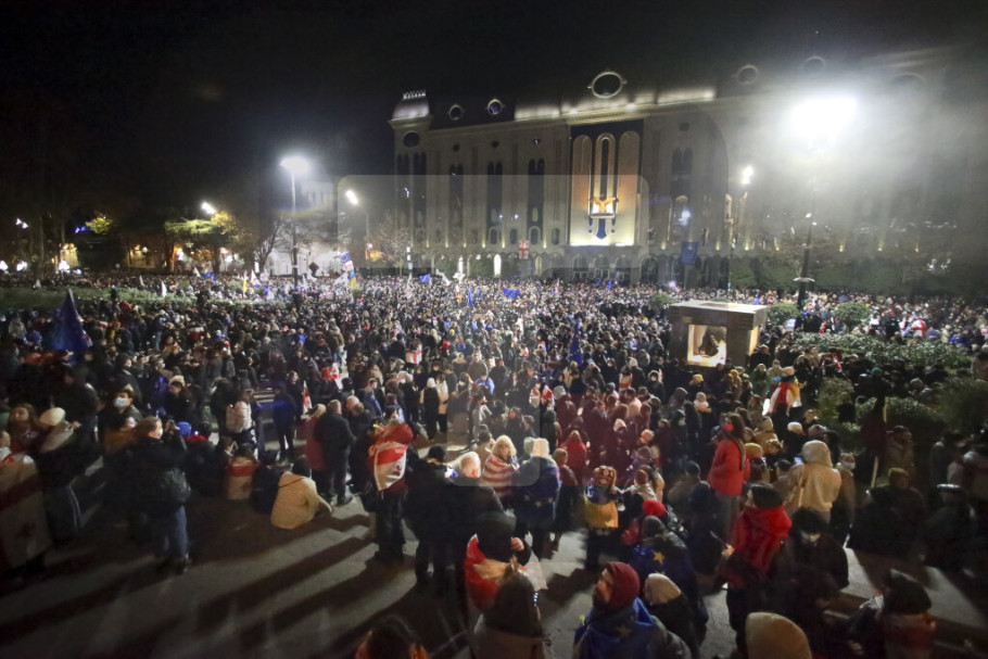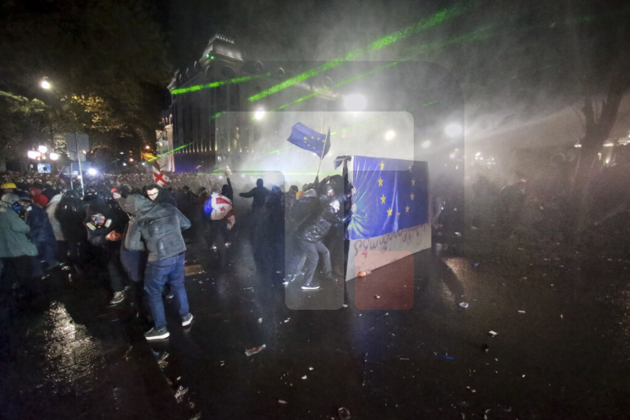 Hiljade demonstranata koji protestuju protiv odluke gruzijske vlade da obustavi pregovore o pridruživanju Evropskoj uniji okupilo se drugu noć zaredom ispred parlamenta u glavnom gradu Tbilisiju, i kao i prethodne večeri sukobili su se sa policijom, javlja AP.
