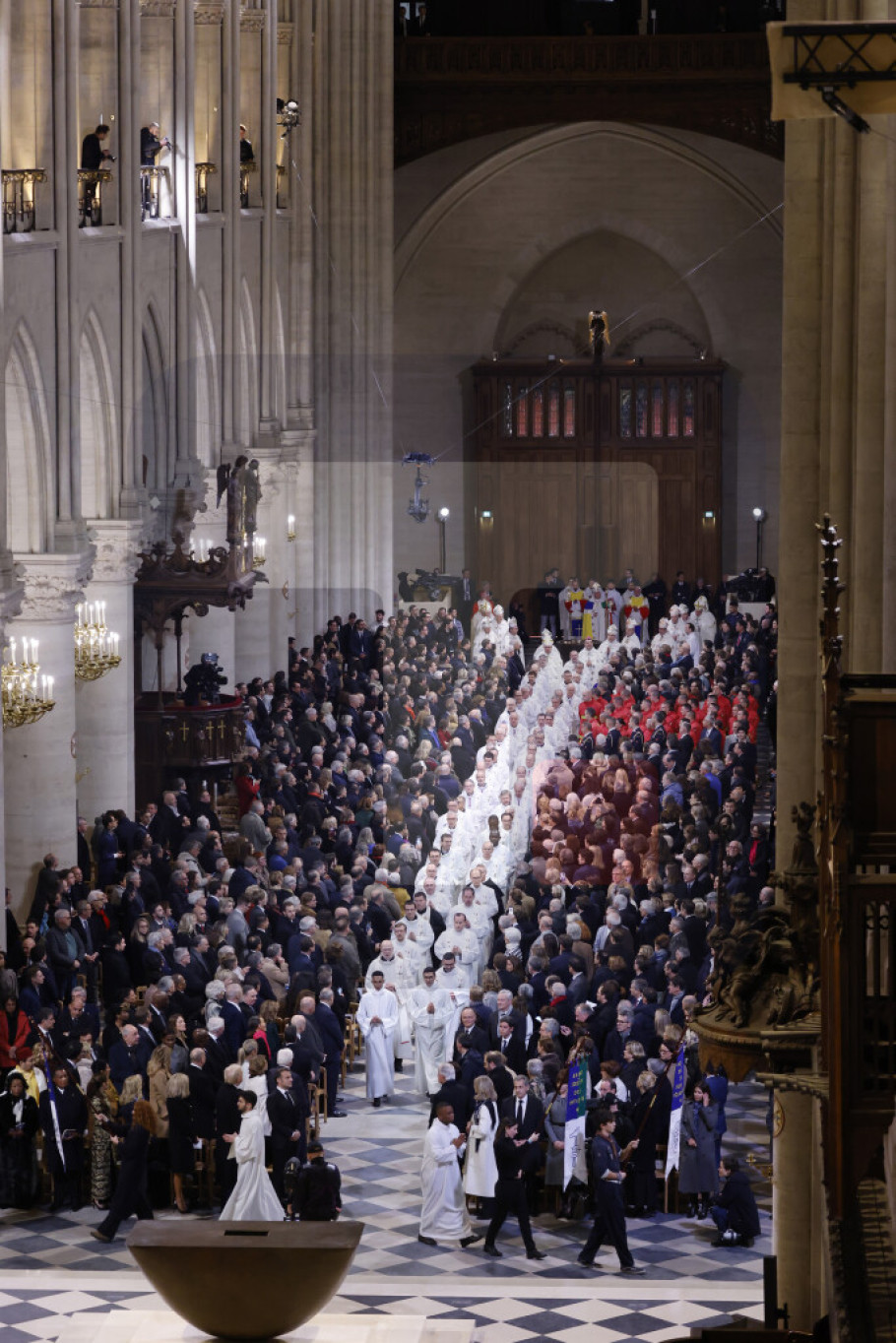 Svetske lidere i visoke zvanice ispred Notr Dama dočekali su predsednik Francuske Emanel Makron i i njegova supruga. Predsednički par se fotografisao sa šefovima država, vlada i poznatih ličnosti na trgu ispred Notr Dama.