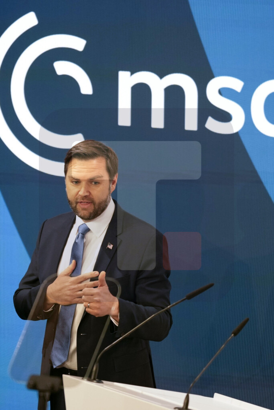 On je počeo obraćanje na Minhenskoj bezbednosnoj konferenciji izjavom da administracija Donalda Trampa "misli i moli se" za one koje su pogođeni jučerašnjim napadom u Minhenu.