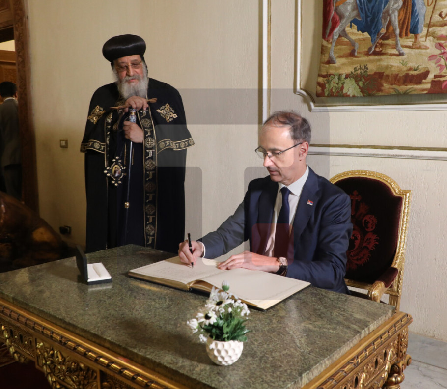KAIRO - Predsednik Vlade Republike Srbije prof. dr Đuro Macut naglasio je danas u Kairu, tokom razgovora sa poglavarom Koptske pravoslavne crkve, papom aleksandrijskim i patrijarhom Stolice Svetog Marka Tavadrosom II, da Srbija ostaje čvrsto posvećena negovanju vekovnih prijateljskih veza između Srbije i Egipta, te očuvanju verskih sloboda i dijaloga među religijama.