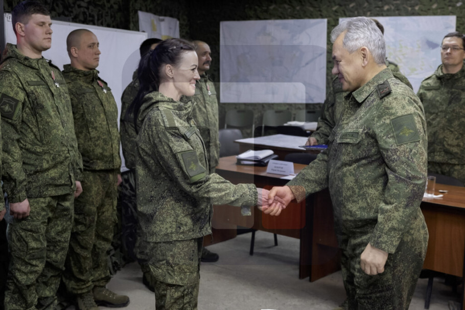Šojgu je obišao istureno kontrolno mesto jedne od formacija, gde je saslušao izveštaj komandanta, general-pukovnika Rustama Muradova i oficira štaba, o trenutnoj situaciji i dejstvima trupa, prenosi RIA Novosti.