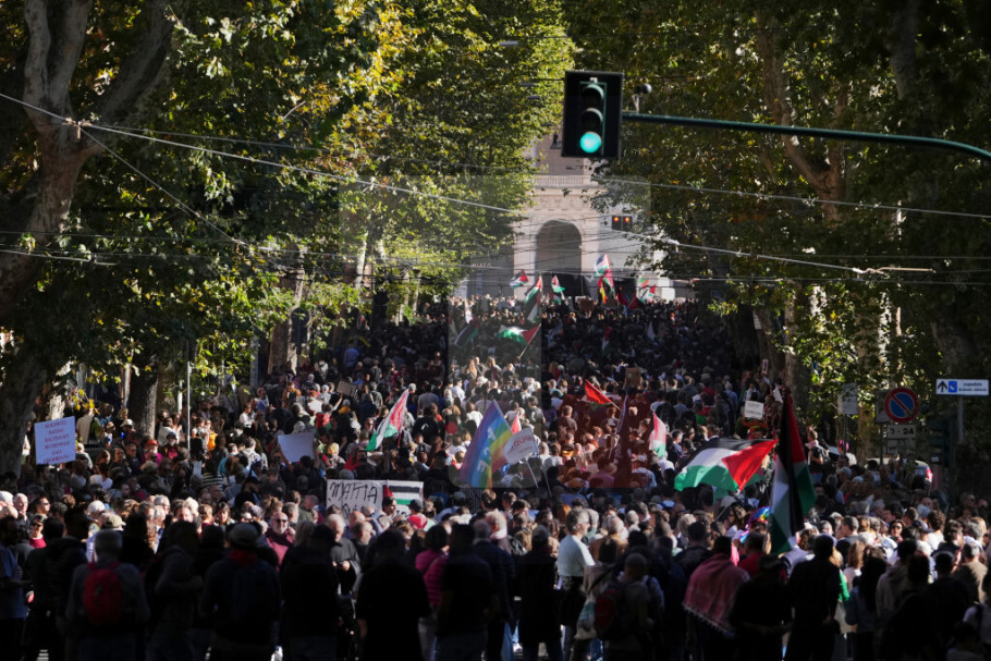 RIM - Veliki broj ljudi okupio se danas na protestu u centru Rima, četvrtog dana zaredom, nakon što su izraelske vlasti u sredu presrele međunarodnu flotilu koja je pokušala da dostavi humanitarnu pomoć Gazi i privele aktiviste.
