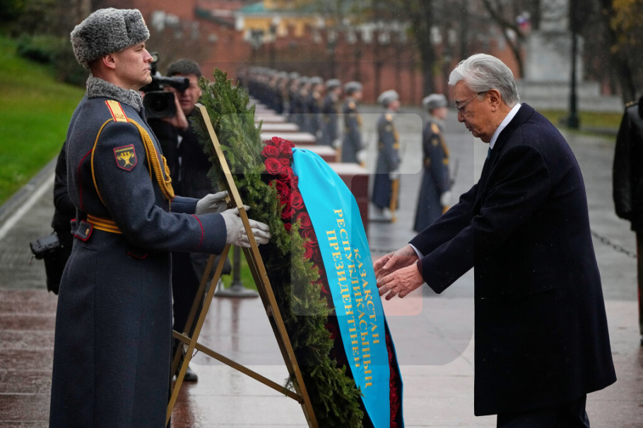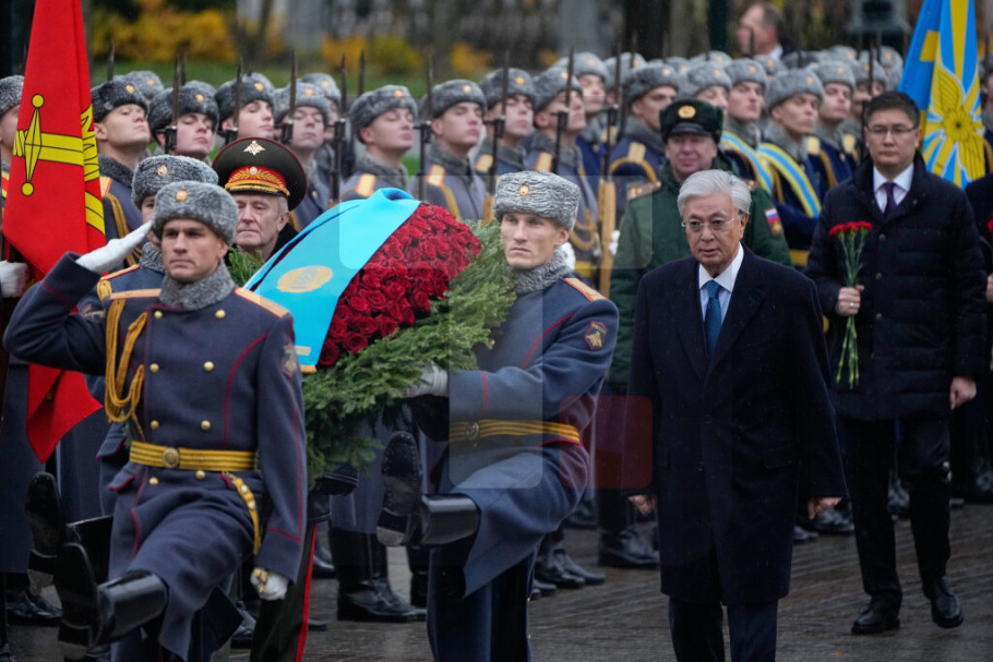 Predsednik Kazahstana je položio venac na Grob neznanog junaka, sa trakom u bojama kazahstanske zastave pričvršćenom za njega.