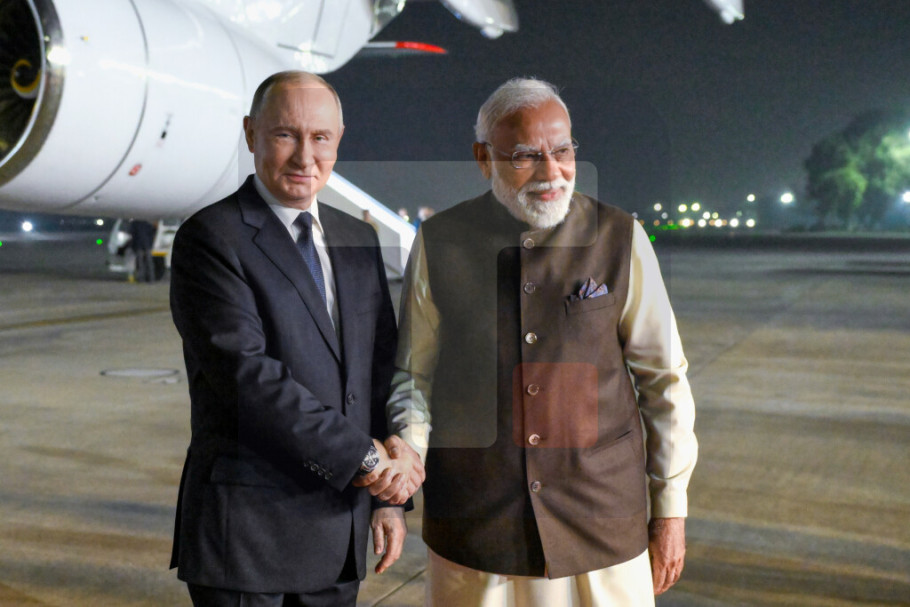 Putin je danas stigao u dvodnevnu državnu posetu Indiji. Predsednički avion je sleteo u bazu indijskog vazduhoplovstva u Palamu. Premijer Indije pozdravio je ruskog lidera na stepenicama.