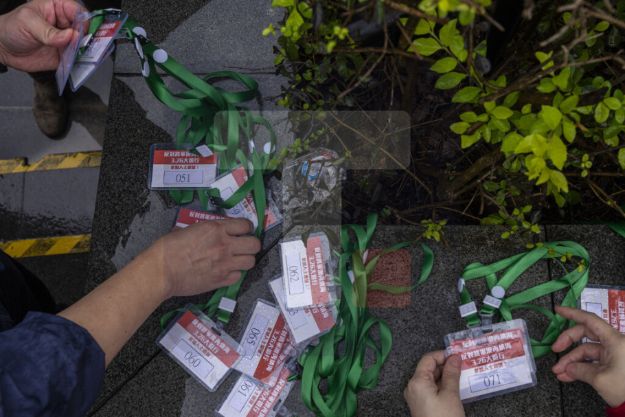 Demonstranti su morali da nose numerisane kartice i zabranjeno im je nošenje maski, kako bi policija mogla da nadgleda njihov protest protiv predložene melioracije zemljišta i izgradnje deponije za smeće.