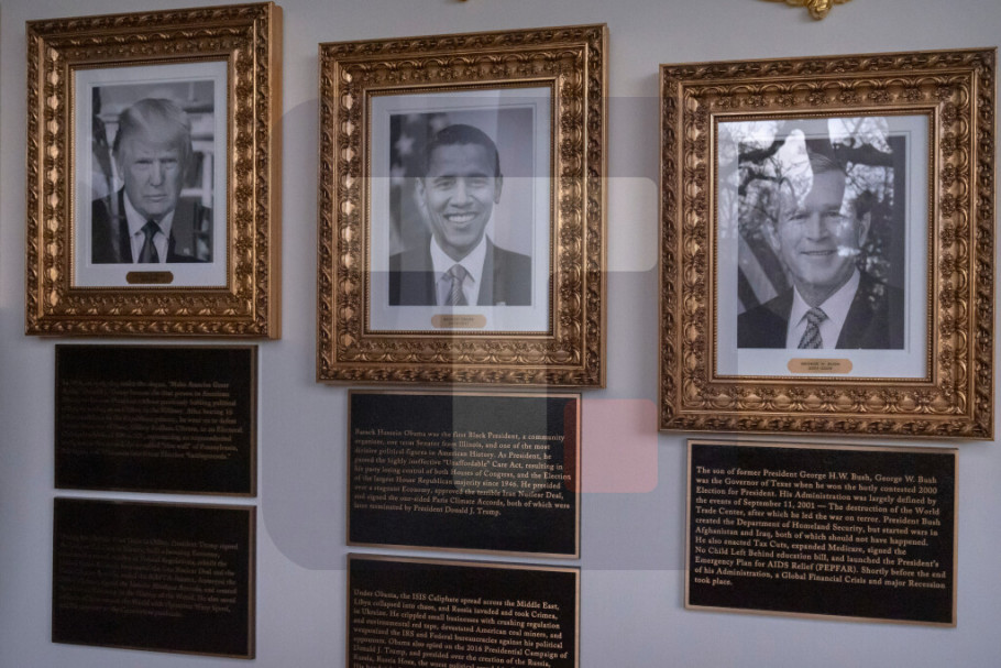 Portparolka Bele kuće Kerolajn Livit je za CNN rekla da su ploče pored fotografija bivših američkih predsednika "elokventno napisani opisi svakog predsednika i nasleđa koje su ostavili za sobom".