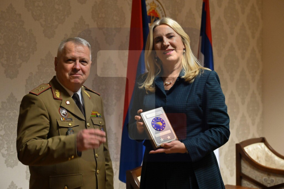 SARAJEVO - Srpski član Predsedništva BiH Željka Cvijanović zahvalila je komandantu Eufora u BiH Florijanu Marijanu Barbuu na dosadašnjoj saradnji.